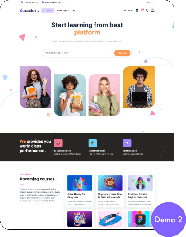 Academy LMS is the best solution for any course-based online educational platform. Academy LMS can fit with any educational institute like school, college, university, training institute, yoga, cooking, painting, you just name it. Academy LMS is beneficial for: