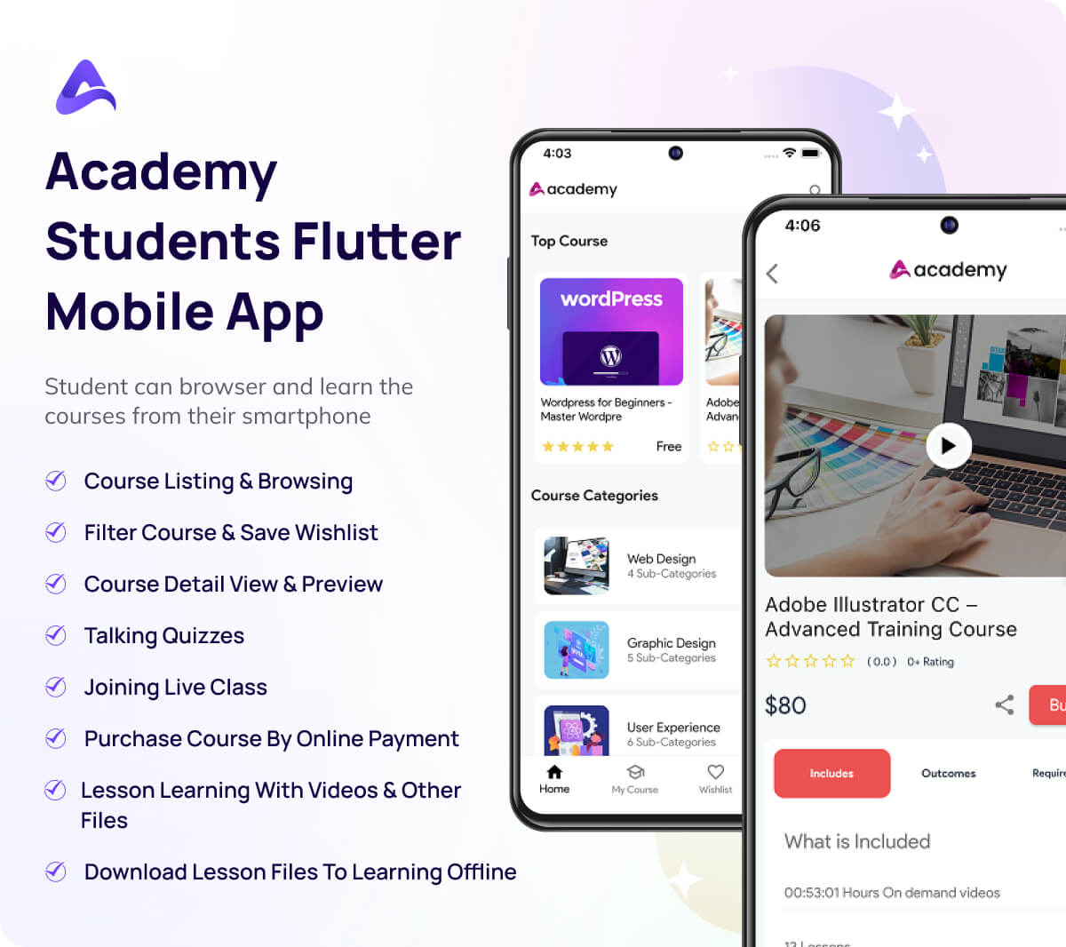 On this platform, students can purchase or subscribe to a course for enrollment. They can start or continue their enrolled course from the last preview. They can also browse courses and make wishlists. In Academy, a student can apply to become an instructor.