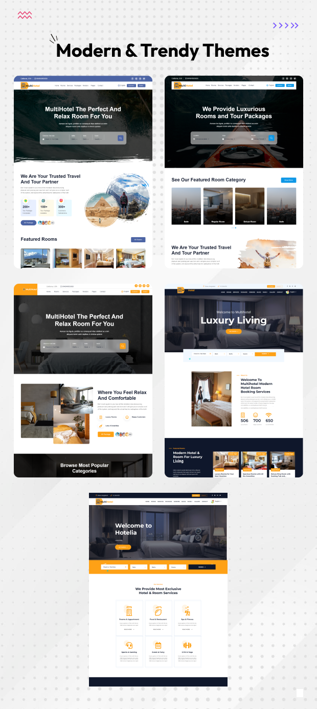 MultiHotel provides 15 different templates. It’s frontend part is fully Multilingual & RTL supported