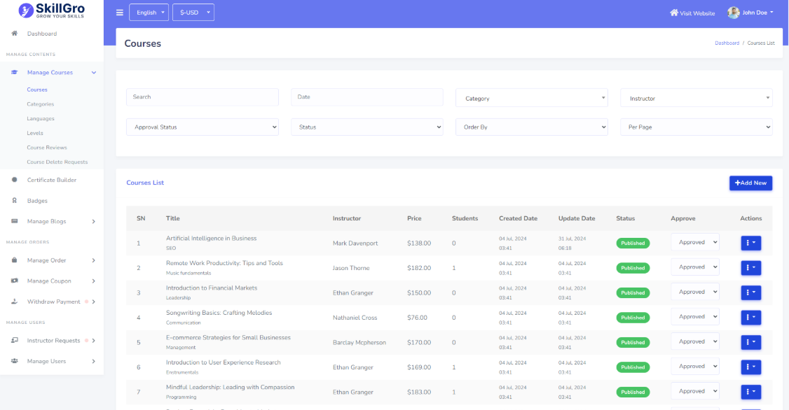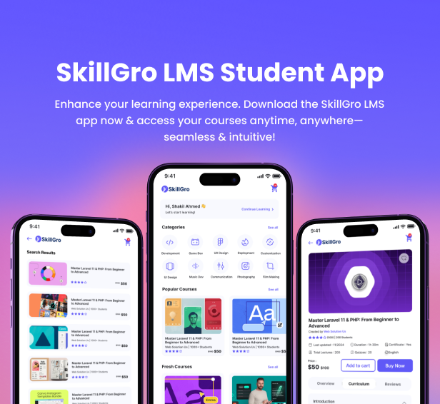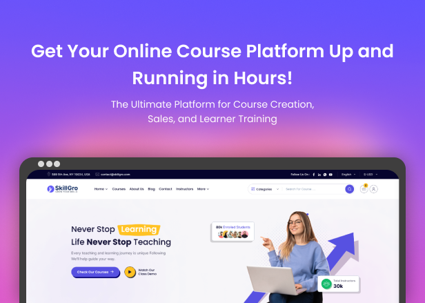 SkillGro – Course & Learning Management System Laravel Script Key Features