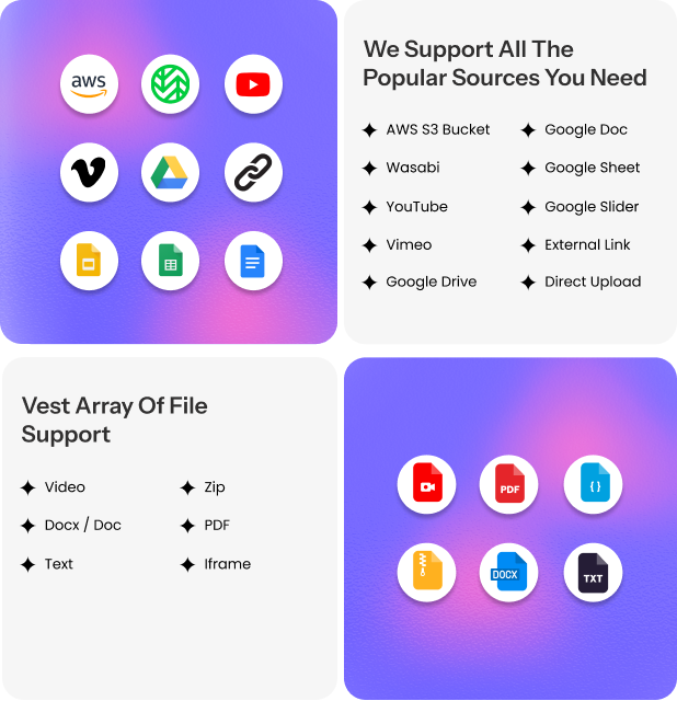 - Courses support uploading files in video, PDF, TXT, and DOCX formats.